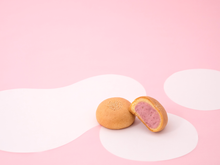 いちごの甘さが香る、柔らかなミルク風味の白餡を包んだ焼き饅頭です。